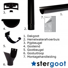 Op zoek naar een complete set voor uw dakgoot? Deze set is geschikt voor een dakgoot van maximaal 8 meter lengte aan één zijde.